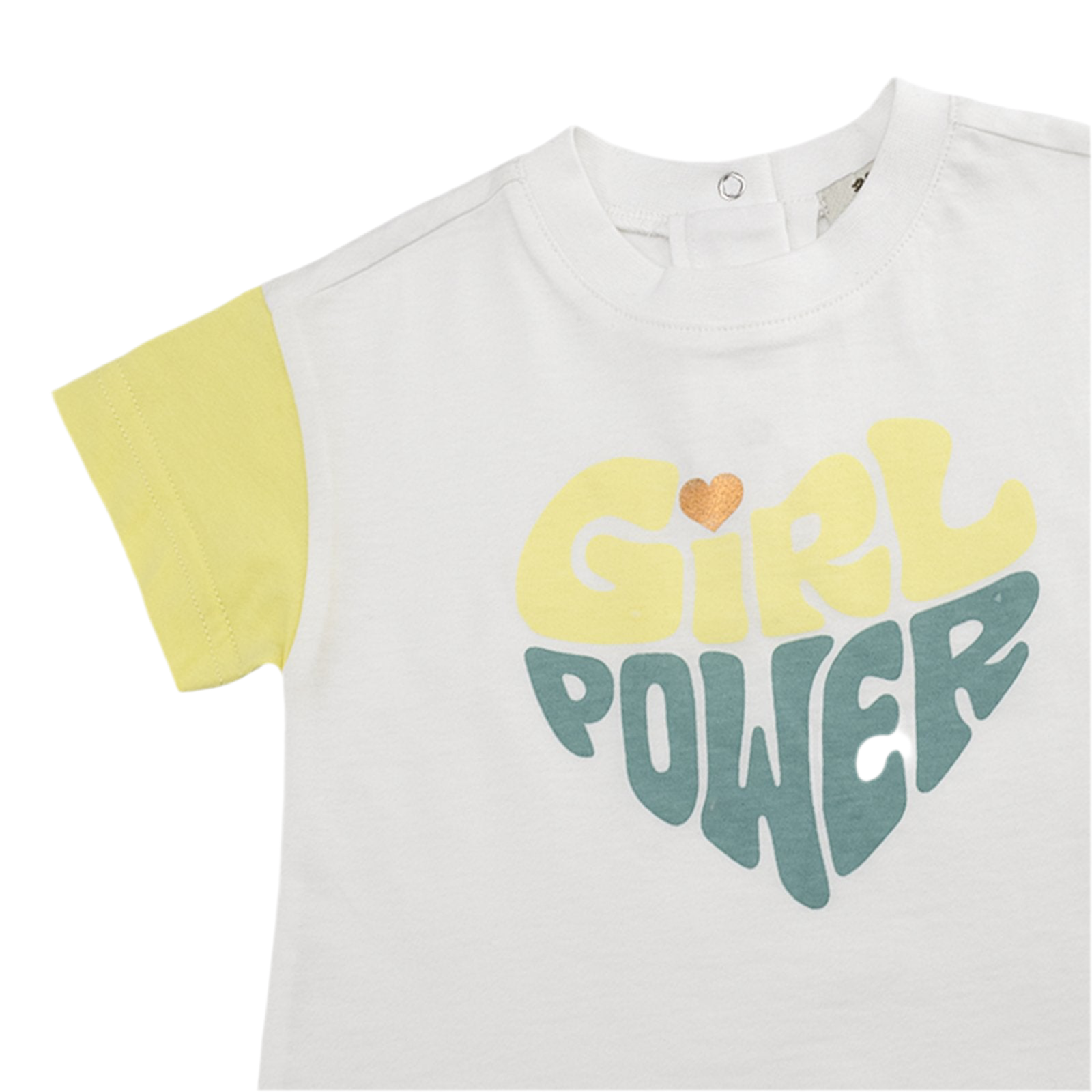 Tricou imprimat PANCO - Keep Going, Alb cu maneci colorate, pentru fetite