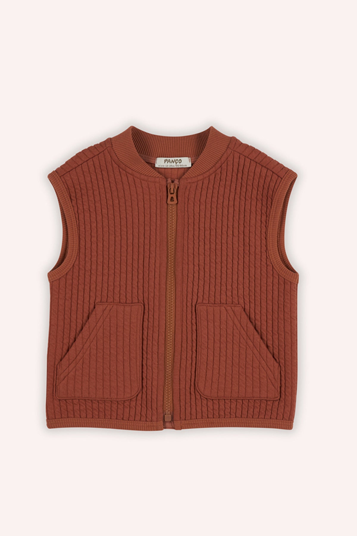 Vesta tricotata cu model matlasat, PANCO, Caramiziu, pentru bebe baieti